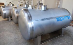 Wykonujemy zbiorniki ze stali ze stali nierdzewnych i kwasoodpornych, ciśnieniowe i bezciśnieniowe o pojemnościach od 100 do 100000 litrów wg. dokumentacji własnej lub powierzonej przez klientów. Najczęściej stosowane przez nas gatunki stali z tej grupy produktowej są następujące: 1.4301/1.4307 (304/304L), 1.4541 (321), 1.4404 (316L) i 1.4571 (316Ti). Podstawowym rodzajem stali stosowanym do produkcji zbiorników są blachy wykonywane zgodnie z normami EN10088-2 i EN10028-7. W zakresie grubości blach do 6 mm stosujemy blachy zimnowalcowane o powierzchni gładkiej 2B jedno lub dwustronnie foliowane. Przy większych grubościach (8 mm i więcej) do produkcji zbiorników używamy blach gorącowalcowanych o powierzchni 1D.